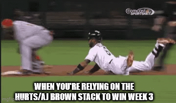 30 pts from 4 guys to win, and they're all in the KC/PHI game. RIP Fantasy points.